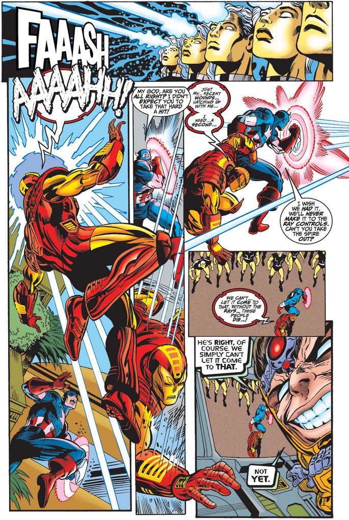 …as seen below, narrated by Tony, who admires Cap’s cool demeanor under pressure while he struggles against A.I.M. and Mentallo.