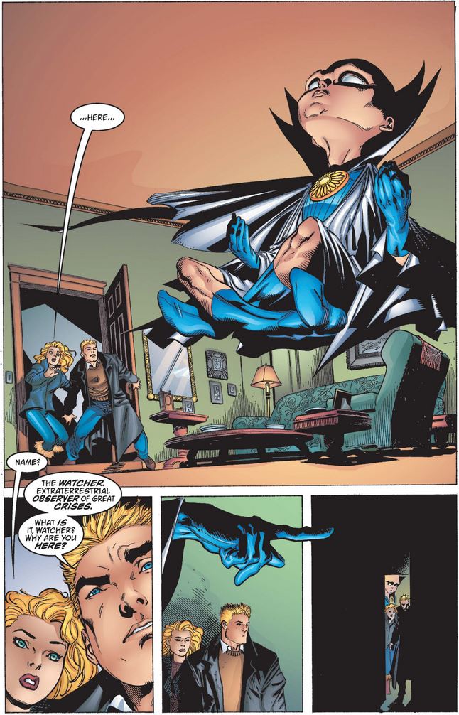 The Red Skull toys with them for a little bit, warning there’s a bad moon arising and trouble on the way, yada yada, and after he’s gone Cap demands answers from Uatu…
