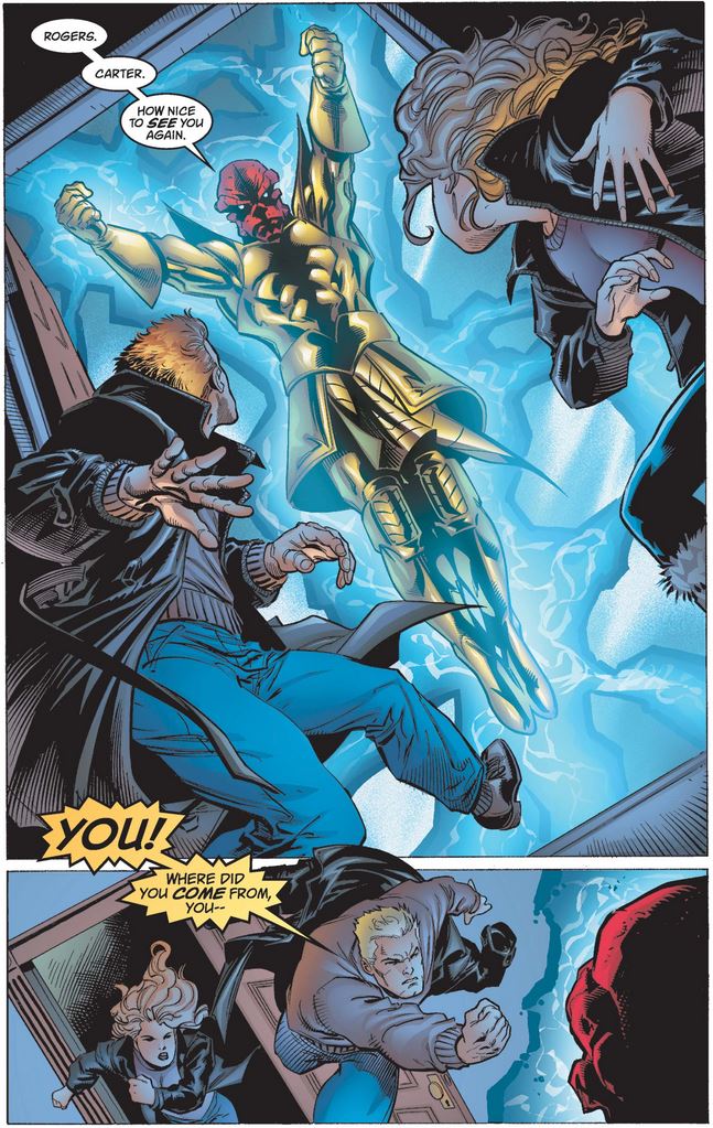 Back on Earth, Cap finds the Red Skull teasing the tortured residents of a superheated New York City with an apple, and after confronting him he sees a way to defeat him without doing that thing Sharon reminds him he could do, were he not who he is.