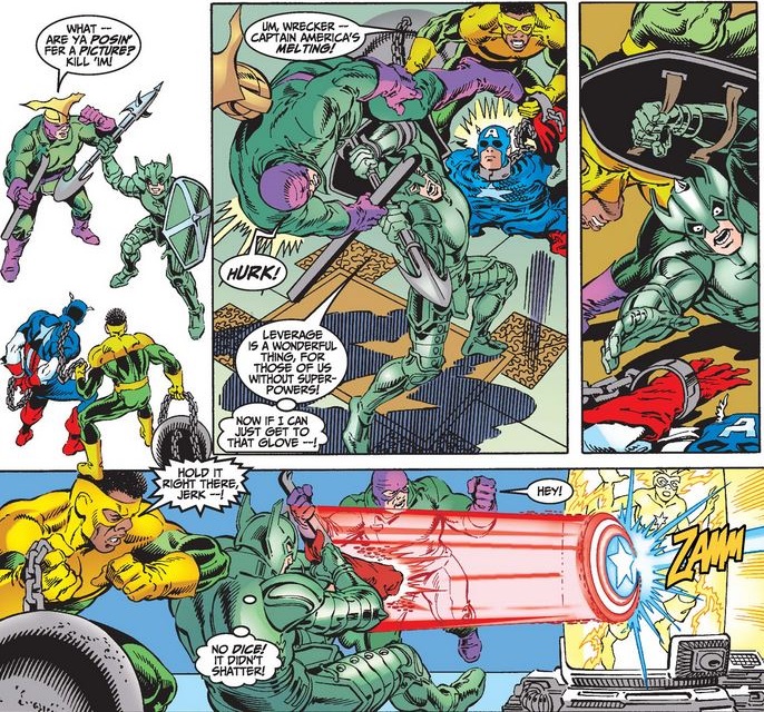 …with the Black Knight questioning Wanda’s split-second action and Simon and Cap defending her, the latter citing the lives saved, not only Monica’s but the Wrecking Crew’s as well.