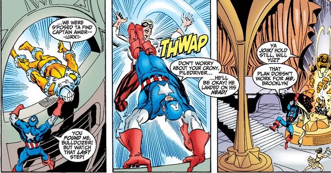 ALSO THESE MONTHS: Captain America #17 (May 1999), Captain America: Sentinel of Liberty #9 (May 1999), Cable #67-68 (May-June 1999), Avengers Forever #6-8 (May-July 1999), Captain America #18 and Nova #2 (June 1999), Captain America: Sentinel of Liberty #10-11 (June-July 1999), and Captain America #19 (July 1999)