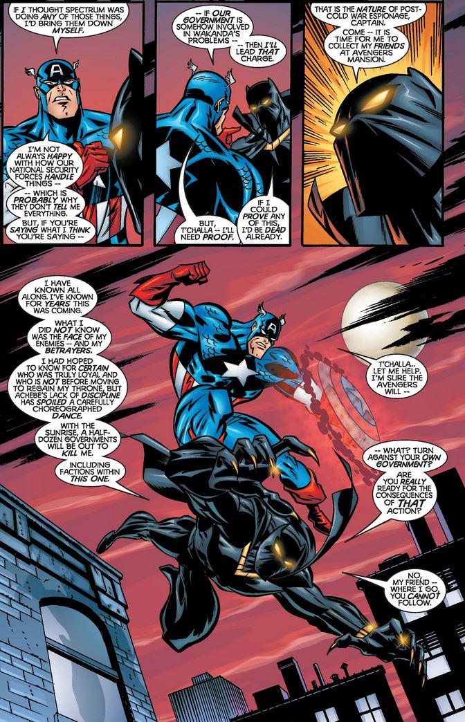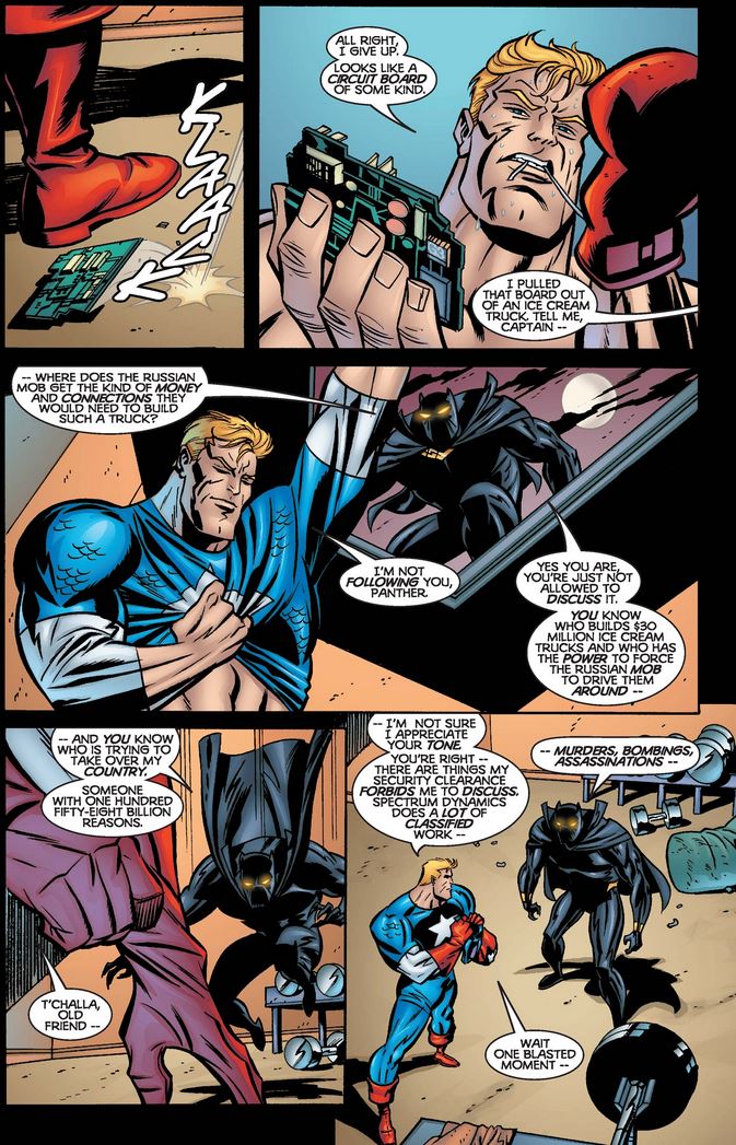 …which foreshadows the revelation at the end of the issue (after Cap gives the only answer to the Panther’s riddle he could).