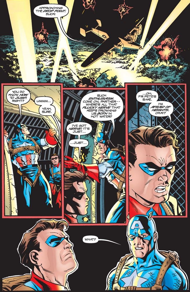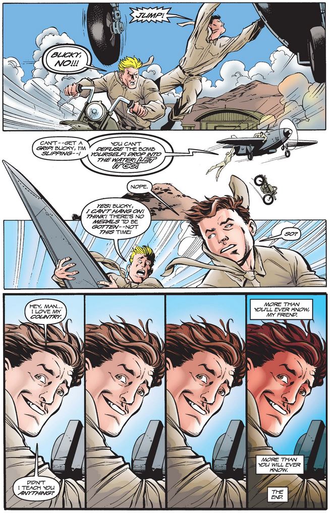 The issue ends with their final adventure together (so far), chasing Zemo’s rocket as Bucky urges Steve on and Steve telling him it’s too late…