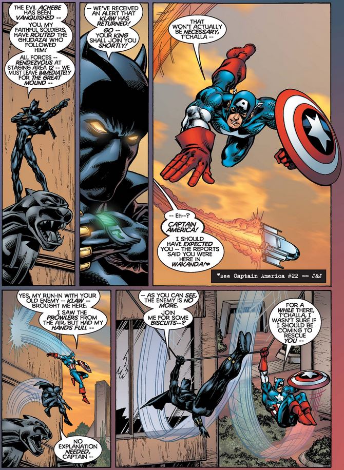 Finally, Black Panther #12 serves as a sort of epilogue to our tale, as the king of Wakanda alerts his subjects to Klaw’s return, only to receive an update from Captain America himself…