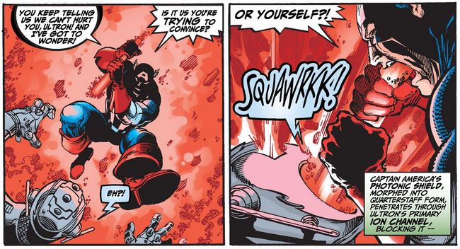 …which, little by little, makes a slight dent. (At least Ultron has the sense to acknowledge Cap’s perseverance, albeit in a backhanded fashion.)