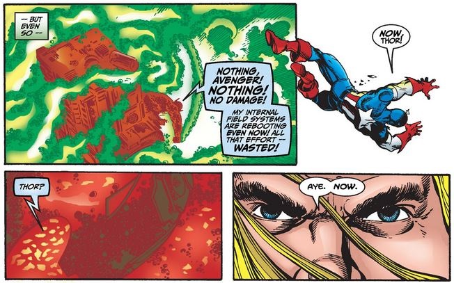 Unfortunately, the Avengers have been in better shape, and Cap’s recommendation to back off and conserve their strength comes too late.