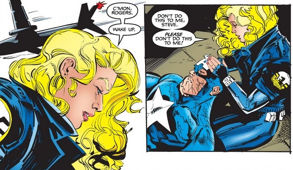 After a few pages of Protocide successfully taking on a entire SHIELD team, attention turns to Cap as seen as the end of issue #35, lying unconscious at Sharon Carter’s feet after defeating Protocide and saving the dangerous Omega Compound for falling into the wrong hands.