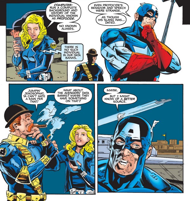 It’s Cap’s turn to be surprised, albeit incredibly so, when Cache reveals Protocide is from his own era.