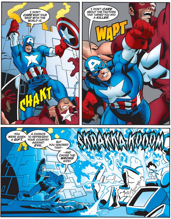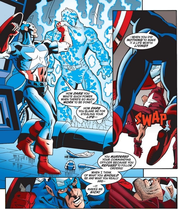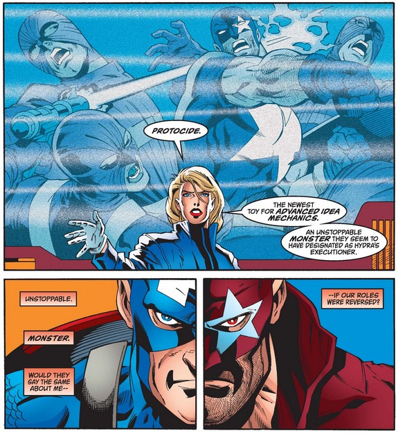 Rather than seeing him as a potential partner or brother of sorts, Cap finally realizes Protocide is an ungrateful and bitter man (who is also a murderer) and a wasted opportunity.