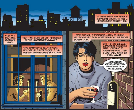 When Steve meets with Connie, she inspires more reflection on the changed role of women in society and what it implies about his own role in it as a very very old man. (Any hype for Glenn Miller is always welcome!)