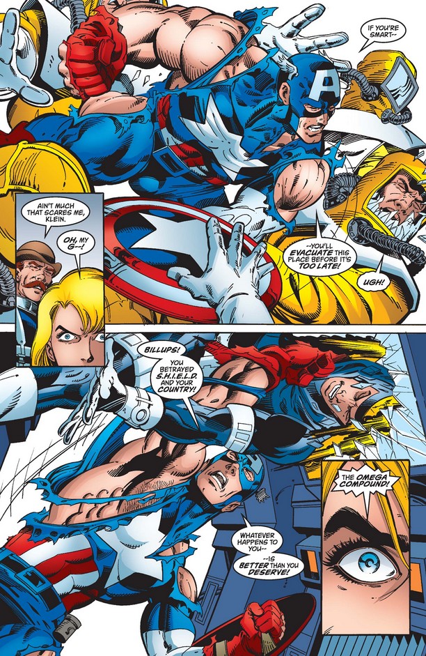 …the Omega Compound, a deadly biochemical weapon (from issue #35) that Cap “borrowed” from SHIELD.
