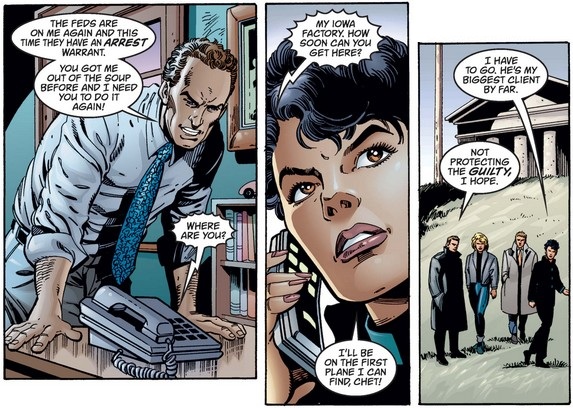 Soon, Sharon Carter and Cameron Klein (from issue #32) show up to update Steve on AIM’s plans to clone another Protocide (the corrupted super-soldier that Cap presumes died at the end of the last issue). As they pull him away, Connie gets a call from her shady client Chet Madden (whom we met in issue #35), who needs her services once again, arousing Steve’s disapproval.
