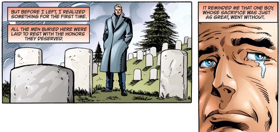 After a brief return to the present day, Cap thinks back to Arlington once again, where he sheds a tear when remembering that Bucky never had a proper burial…