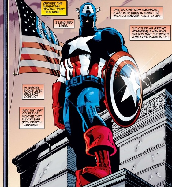 Captain America #40 opens similarly to the last issue, with our hero reflecting on his dual lives and his role in each.