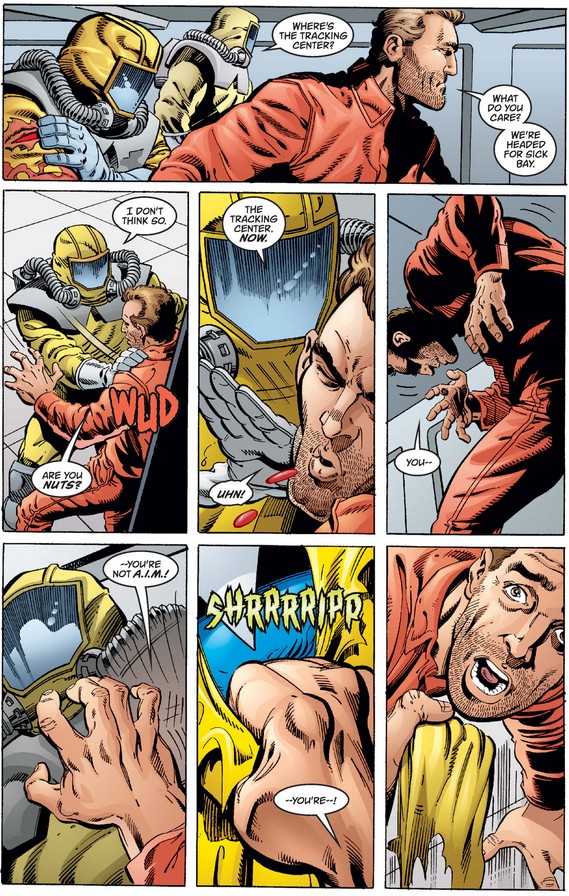 After Cap meets with SHIELD Agent Cameron Klein, who explains that AIM deleted all evidence of Madden’s wrongdoing—even clearing their Cache, ha—we turn to SHIELD’s holding facility, where two AIM agents break rogue SHIELD agent Billups out and take him to another AIM facility, where they insist on going to the tracking center even though one of them is hurt.