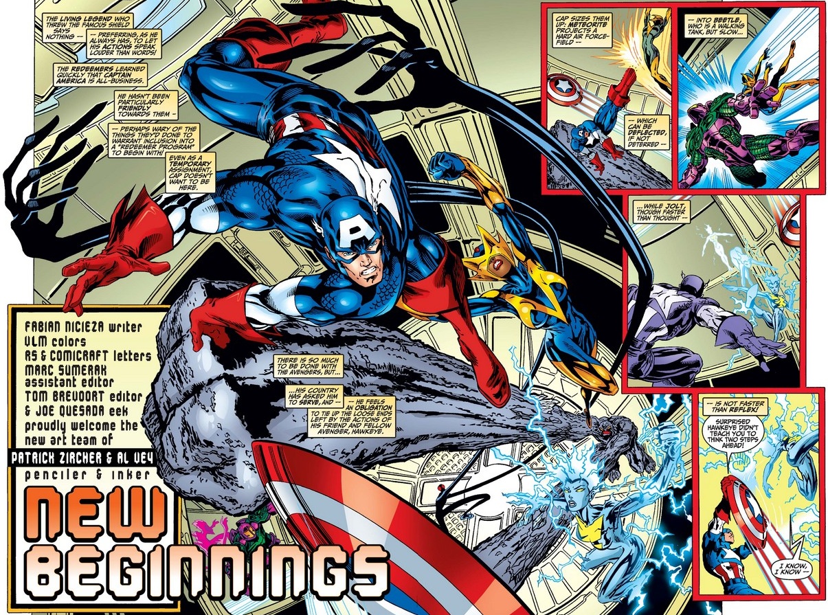 ALSO THESE MONTHS: Captain America #41-43 and Iron Man #42 (May-July 2001), Avengers #40-44 (May-September 2001), Black Panther #30 (May 2001), Fantastic Four: The World’s Greatest Comics Magazine #4 and #8 (May and September 2001), Captain America #44 (August 2001), and Captain America #45 and USAgent #2 (September 2001)