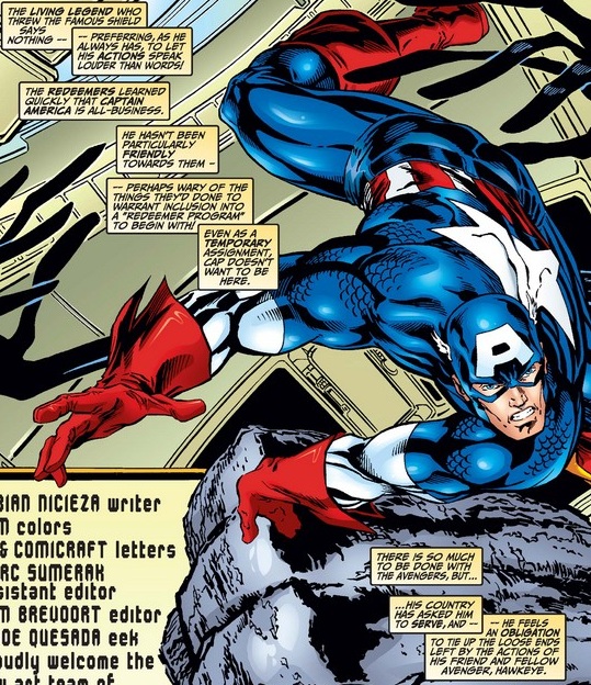 When we finally see Cap, he is being introduced to the Redeemers as “the greatest soldier on the planet” and their new leader.