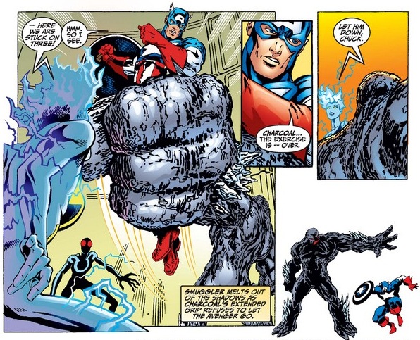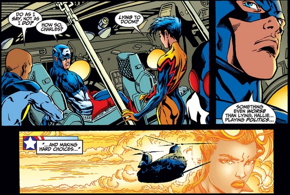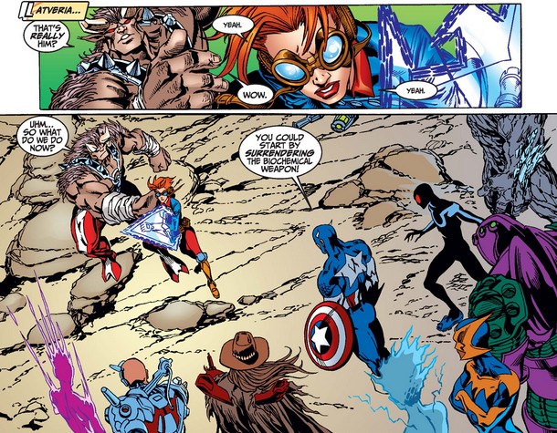 When the heroes breathe the gas and don’t feel dead, Rikki reveals she isn’t as mercenary as she led them to believe—but naively asks Captain America if he has ever had to consider compromising his principles, which we knew full well he is forced to do on a regular basis (as I discuss in chapter 5 of my book).