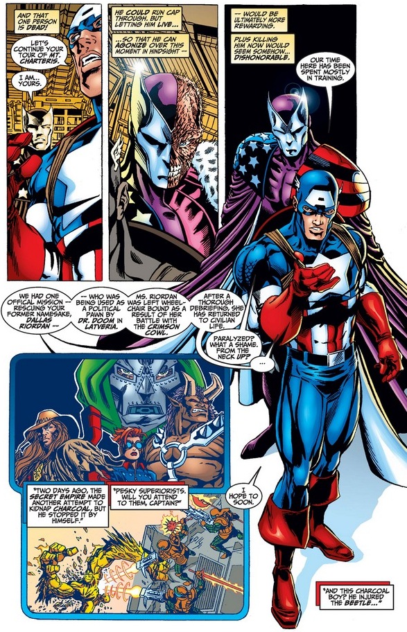 Finally, in issue #54, Cap relinquishes leadership of his team to Citizen V, whom he believes is John Watkins III, grandson of the original two Citizens V and son of the third…