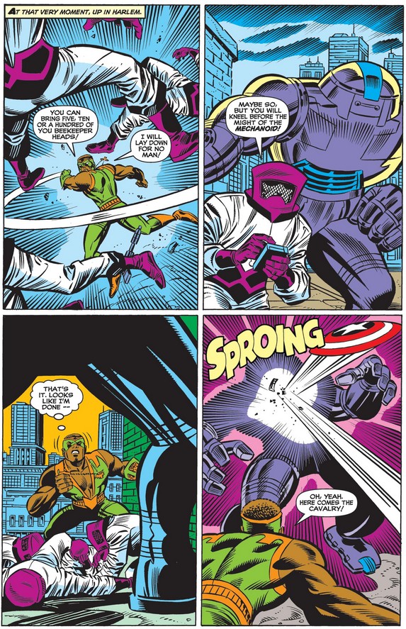 Before he can investigate further, however, he is jumped by AIM agents, whom he easily takes care of until they bring out a secret weapon—but it turns out Sam has one of his own, whether he knows it or not.