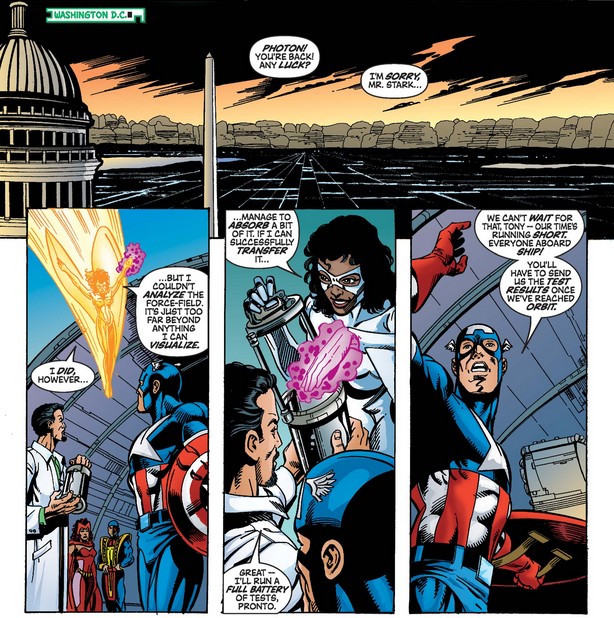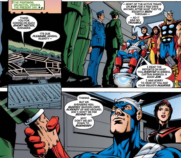 ALSO THESE MONTHS: Captain America #46 and U.S.Agent #3 (October 2001), Captain America/Nick Fury: The Otherworld War (October 2001), Captain America #47 (November 2001), and Avengers: The Ultron Imperative (November 2001).