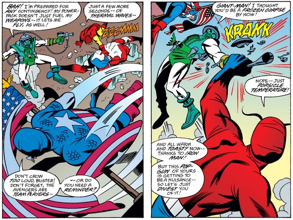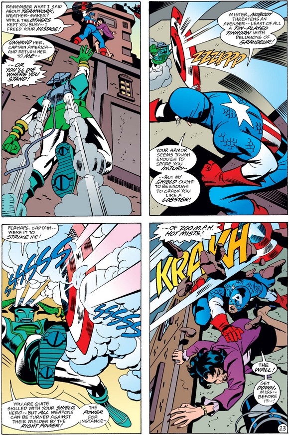 Cap also reminds Weather-Maker that the Avengers are a team, which makes it five against one…