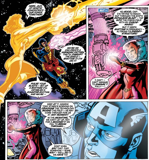 …and encouraging the Scarlet Witch to keep it up (in part by suggesting what might happen if she doesn’t).