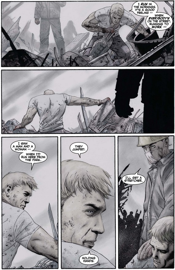 When first we see our hero, he is just one person among many, searching the wreckage of the Twin Towers for survivors while trying to stay positive…