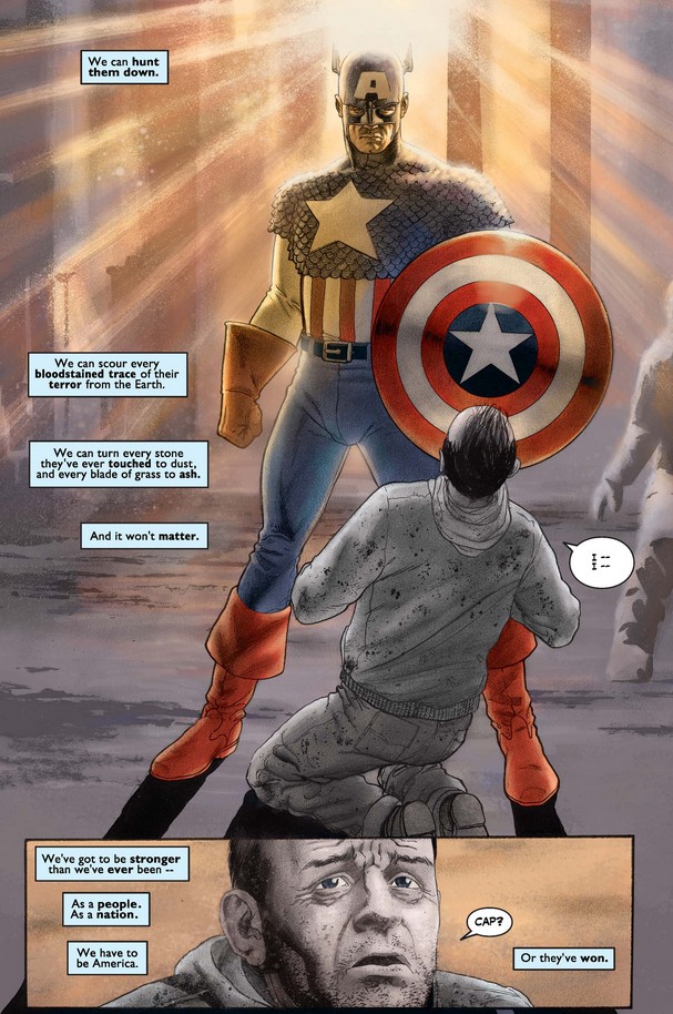We get one last beautiful portrait of Captain America asserting what American need to stand behind as they mourn and prepare for next steps…