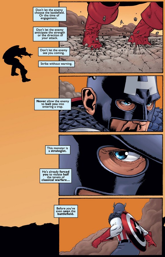 As he lands, Cap thinks about how terrorists have made the traditional rules of war obsolete…