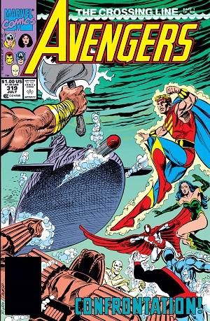 These two issues finish "The Crossing Line," a storyline that began in issue #319, with the Avengers joining with the People's Protectorate (from Russia) and Alpha Flight (from Canada) to face terrorists who hijacked a British nuclear submarine... a situation that, as of the end of the last issue, definitely went south, as shown on... Continue Reading →